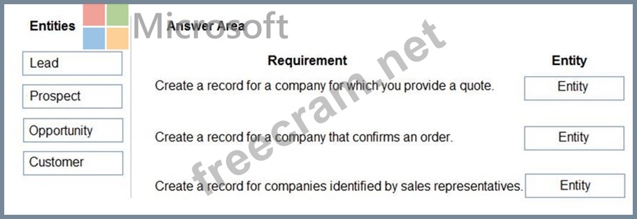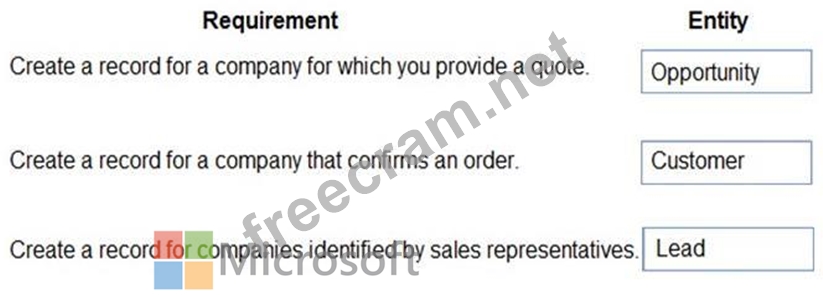 How should you configure the system? To answer, drag the appropriate entities to the correct requirements.