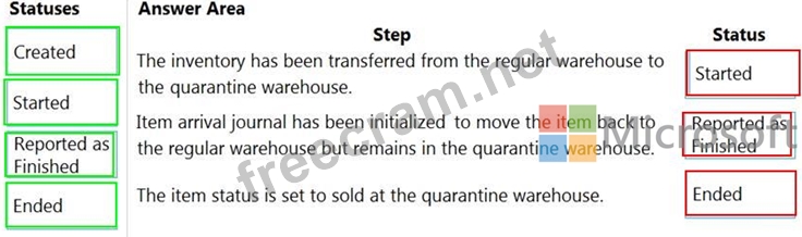 What is the status of the orders based on the location of the item? To answer, drag the appropriate statuses to the correct steps. Each status may be used once, more than once, or not at all. You may need to drag the split bar between panes or scroll to view content.