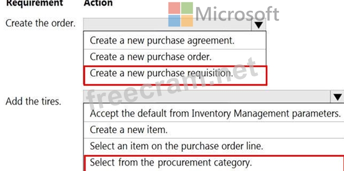 Question 10: You need to order the high-end tires. What should you set up...