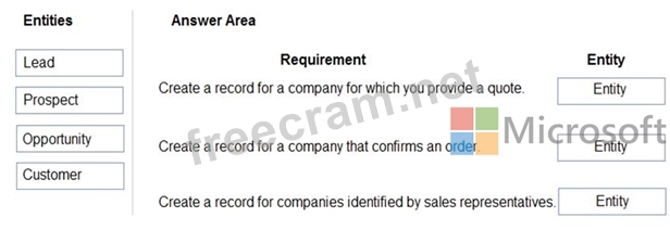 How should you configure the system? To answer, drag the appropriate entities to the correct requirements. Each entity may be used once, more than once, or not at all. You may need to drag the split bar between panes or scroll to view content.