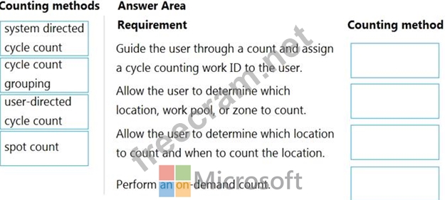 Which counting methods should you use? To answer, drag the appropriate counting methods to the correct requirements. Each counting method may be used once, more than once, or not at all. You may need to drag the split bar between panes or scroll to view content.