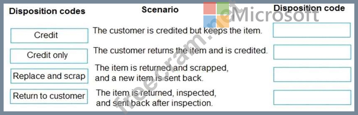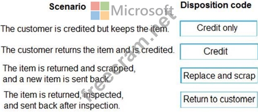 Which disposition codes should you use? To answer, drag the appropriate disposition codes to the correct scenarios. Each disposition code may be used once, more than once, or not at all. You may need to drag the split bar between panes or scroll to view content.