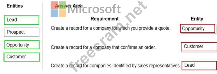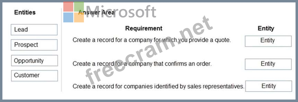 How should you configure the system? To answer, drag the appropriate entities to the correct requirements. Each entity may be used once, more than once, or not at all. You may need to drag the split bar between panes or scroll to view content.