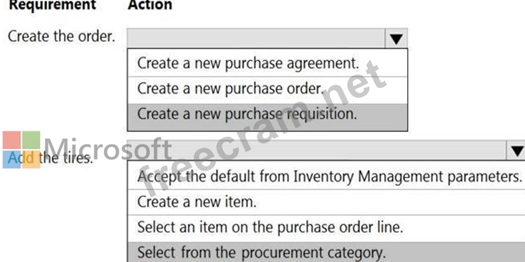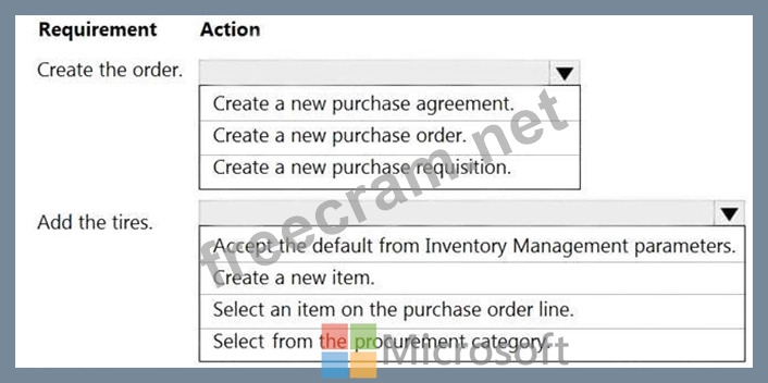 Question 47: You need to order the high-end tires. What should you set up...