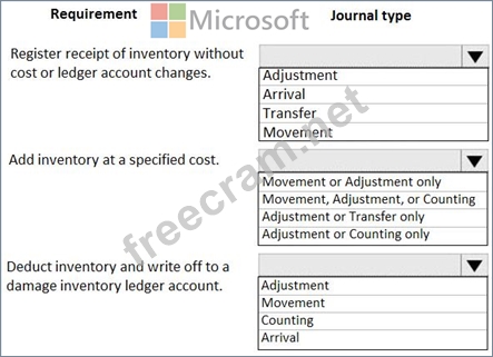 Which journal types should you use? To answer, select the appropriate options in the answer area.