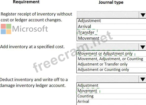 Which journal types should you use? To answer, select the appropriate options in the answer area.