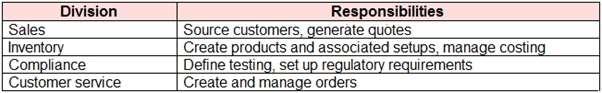 Wide World Importers is a distribution company whose primary customers are small boutique shops which sell globally-sourced products including unique or hand-crafted items such as perfumes and ceramicware. Through the Wide World Importers sales cycle, the commission-based sales team identifies opportunities and negotiates with shops by using a quoting process. The products may or may not already exist in the company's current product list.