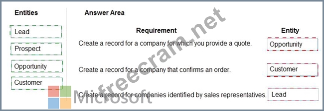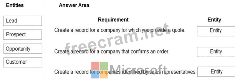 How should you configure the system? To answer, drag the appropriate entities to the correct requirements.