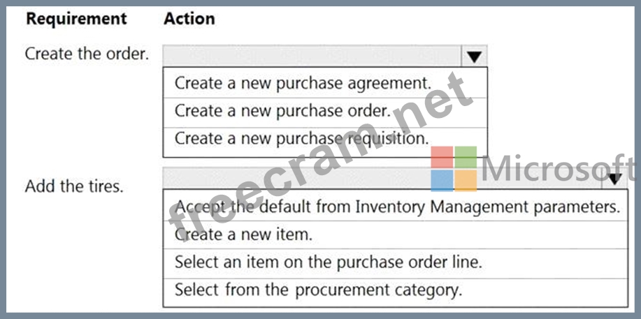 Question 98: You need to order the high-end tires. What should you set up...