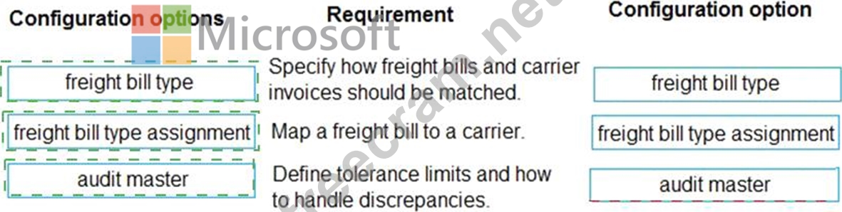 Which configuration options should you use? To answer, drag the appropriate configuration options to the correct requirements. Each configuration option may be used once, more than once, or not at all. You may need to drag the split bar between panes or scroll to view content.