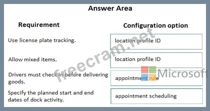 A company plans to use warehouse management and dock appointment scheduling in Dynamics 365 for Finance and Operations.