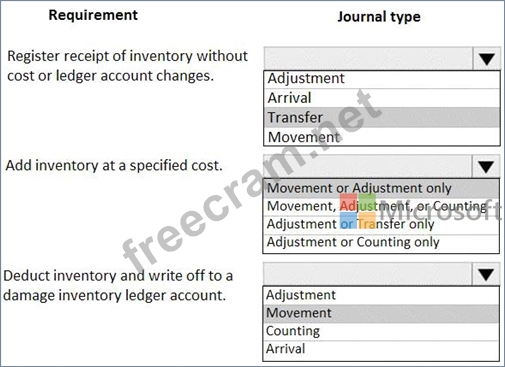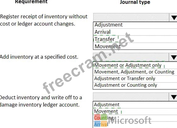Which journal types should you use? To answer, select the appropriate options in the answer area.