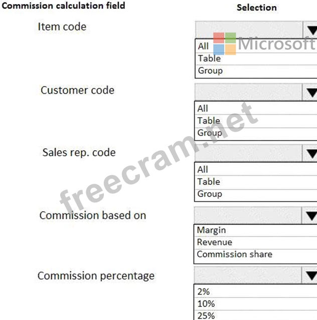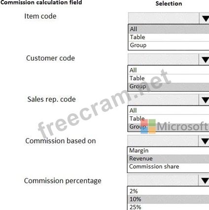 You must configure commissions for the sales representatives in the Midwest region. The calculations must meet the following requirements:
