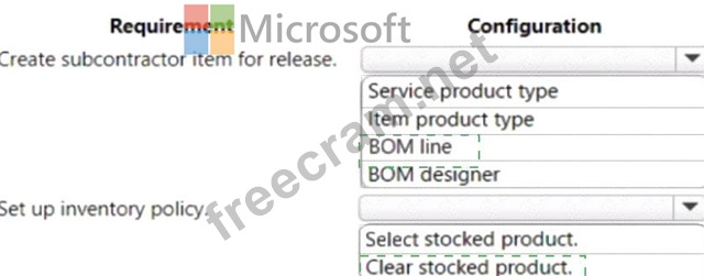 A company is implementing Dynamics 365 Supply Chain Management. The company uses subcontracted services on its bills of material (BOMs).