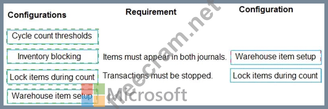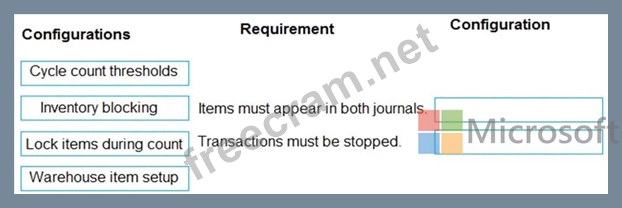 You need to resolve the cycle count issues. To answer, drag the appropriate configurations to the correct requirements. Each configuration may be used once, more than once, or not at all. You may need to drag the split bar between panes or scroll to view content.