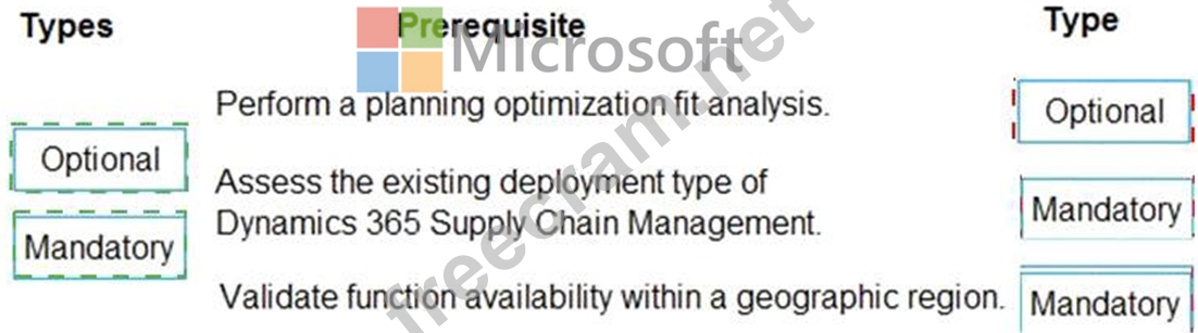 What must the company do? To answer, drag the appropriate types to the correct prerequisites. Each type may be used once, or not at all. You may need to drag the split bar between panes or scroll to view content.