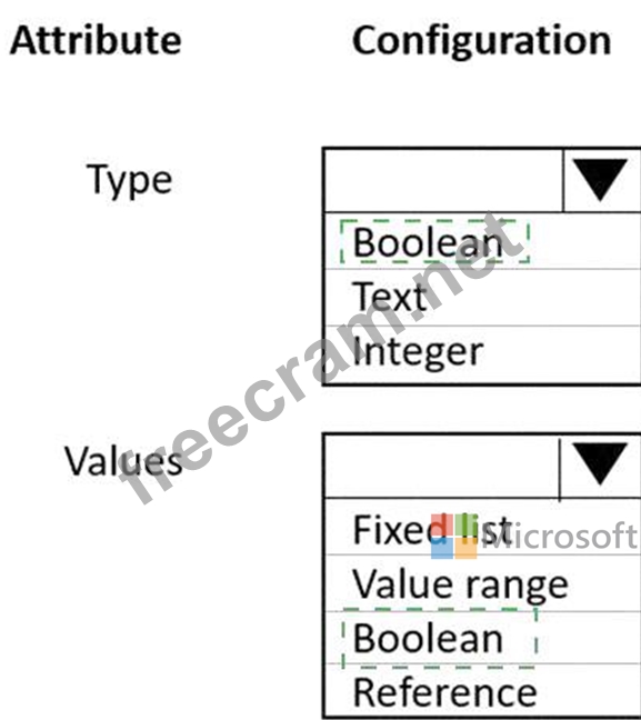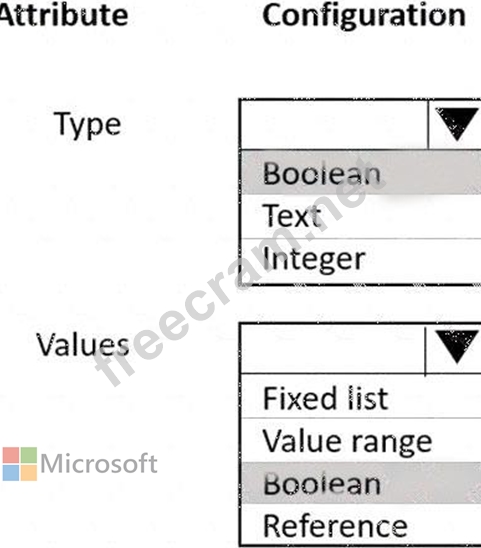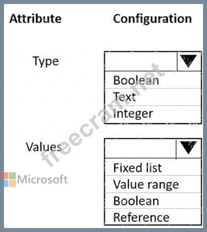 Which configuration should you use for each attribute. To answer, select the appropriate option in the answer area.