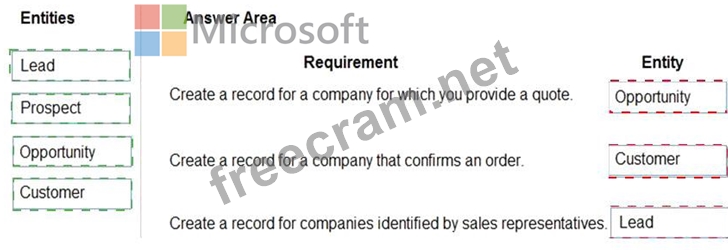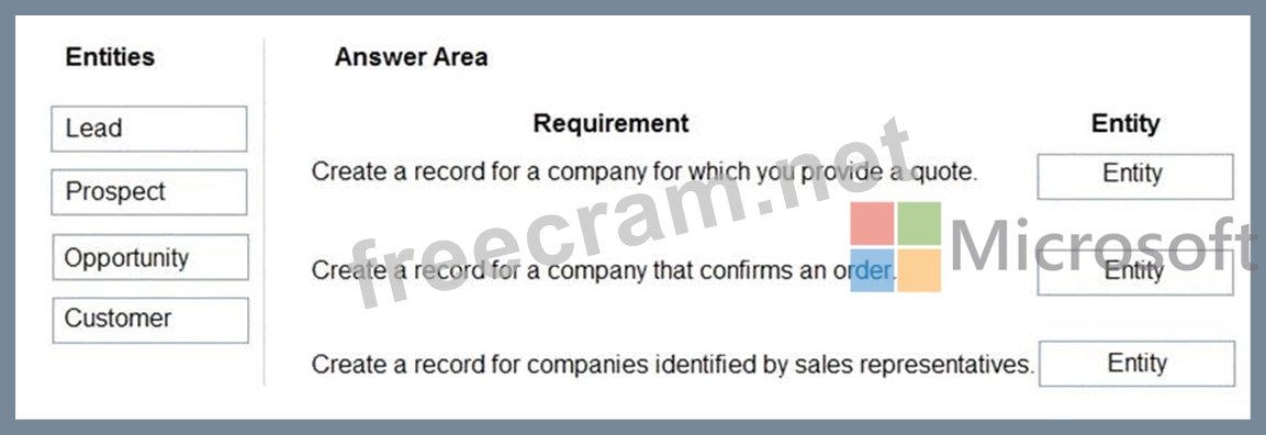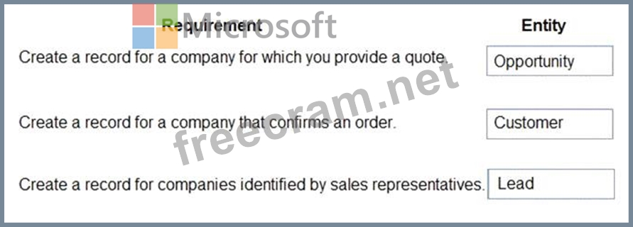 How should you configure the system? To answer, drag the appropriate entities to the correct requirements.