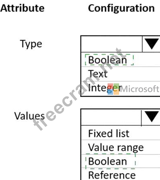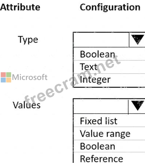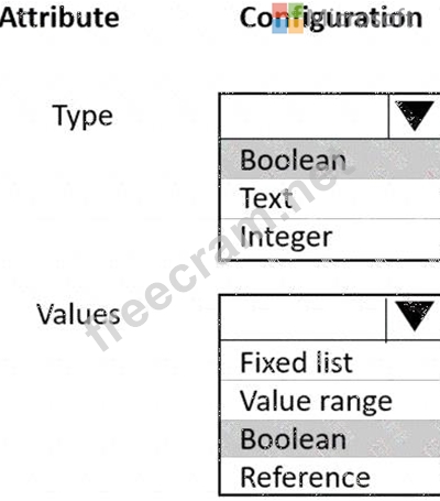 Which configuration should you use for each attribute. To answer, select the appropriate option in the answer area.