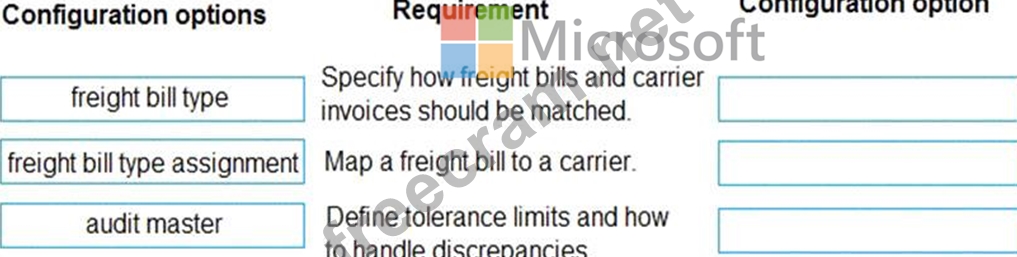 Which configuration options should you use? To answer, drag the appropriate configuration options to the correct requirements. Each configuration option may be used once, more than once, or not at all. You may need to drag the split bar between panes or scroll to view content.