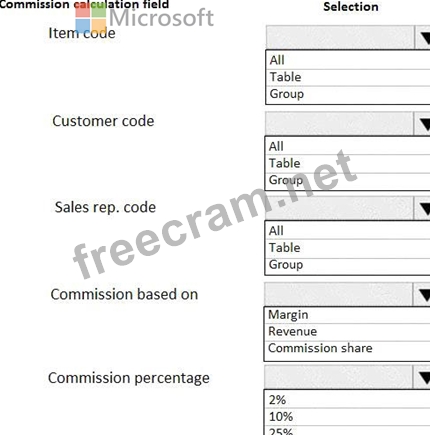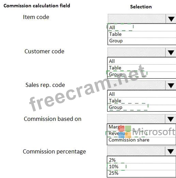 You must configure commissions for the sales representatives in the Midwest region. The calculations must meet the following requirements:
