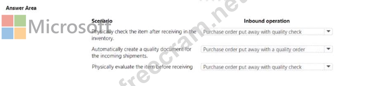 Question 98: You are implementing Dynamics 365 Supply Chain Management fo...
