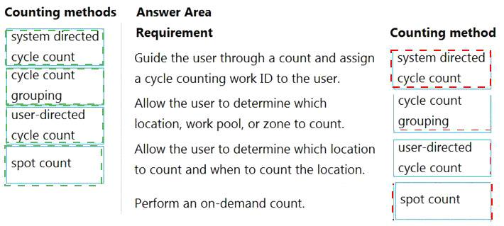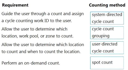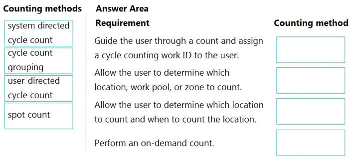 Which counting methods should you use? To answer, drag the appropriate counting methods to the correct requirements. Each counting method may be used once, more than once, or not at all. You may need to drag the split bar between panes or scroll to view content.