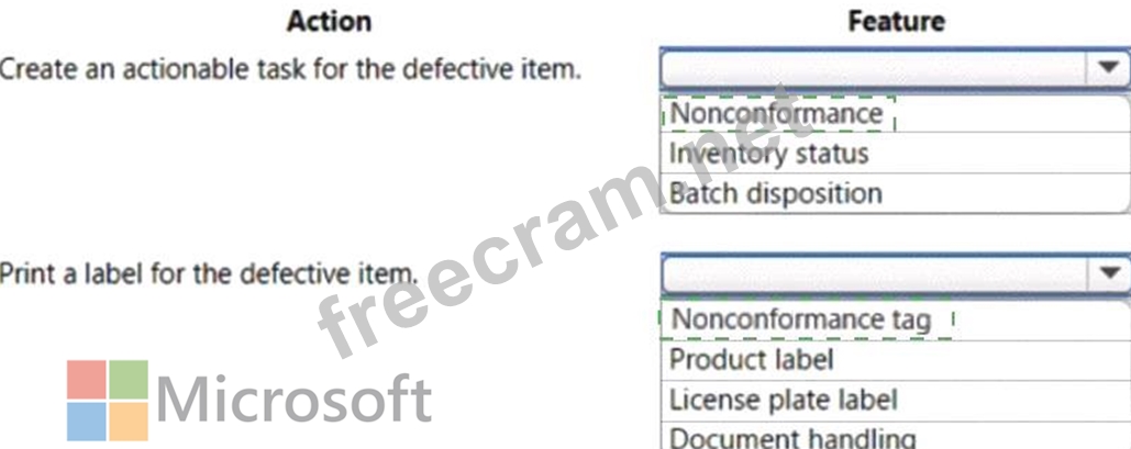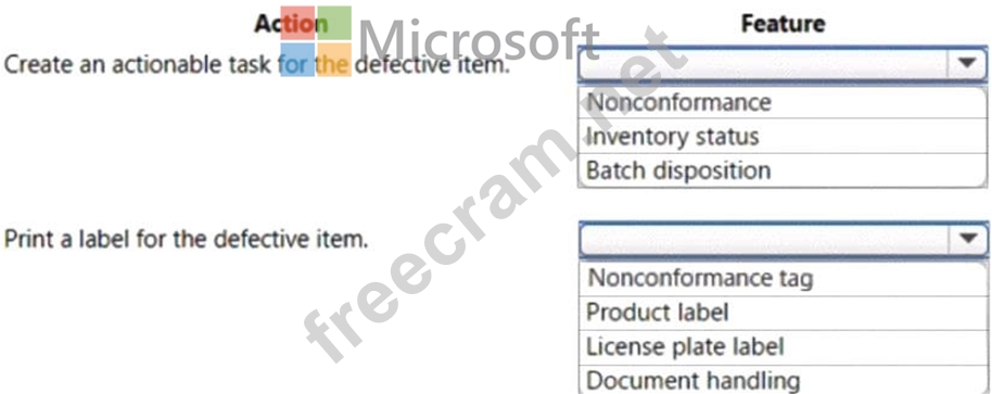 A customer contacts the company to identify a defect in an ordered part. Additional quantities of the defective item are in stock. The defective items require a task that will trigger an action for the items and a label printed.