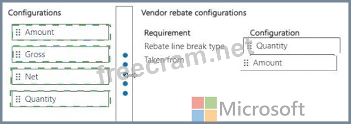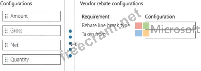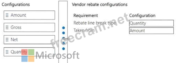 Which configurations should you use for the rebates? To answer, move the appropriate configurations to the correct requirements. You may use each configuration once, more than once, or not at all. You may need to move the split bar between panes or scroll to view content.