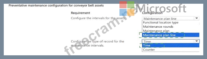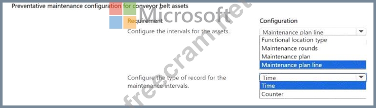 A company is using Dynamics 365 Supply Chain Management for its asset management operations. The company must manage periodic, preventative maintenance for two types of conveyor belt assets.