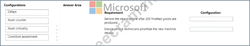 The new machine must be serviced after 200 finished goods are produced. Downtime for the new machine will impact production and must be planned in advance so the production lead times are adjusted The service technicians must always prioritize the new machine repairs over any other repairs.