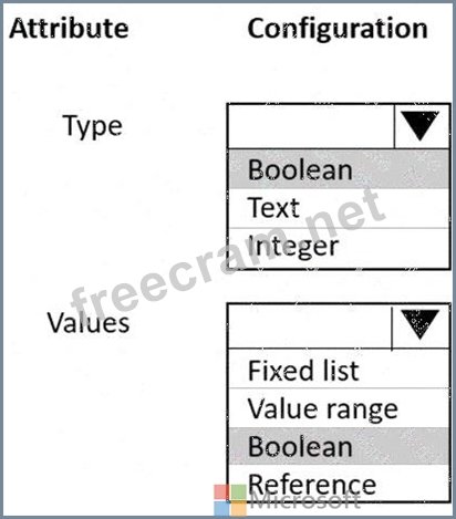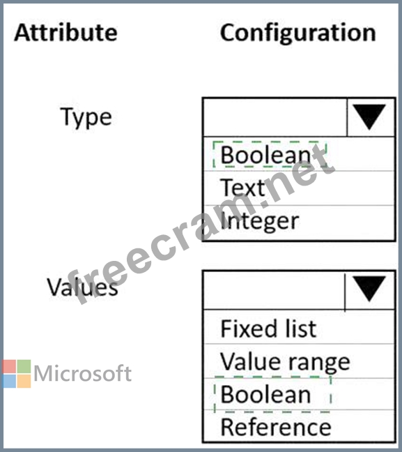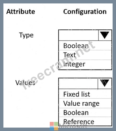Which configuration should you use for each attribute. To answer, select the appropriate option in the answer area.