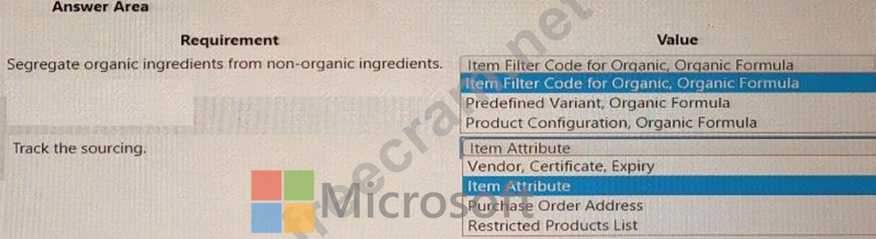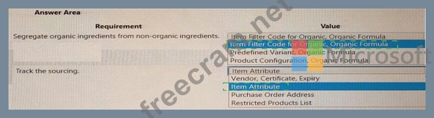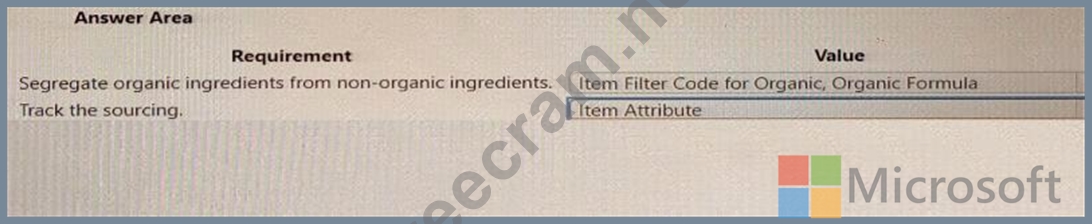 You need to set up the chocolate items. Which values should you select? To answer, select the appropriate options in the answer area. NOTE: Each correct selection is worth one point.