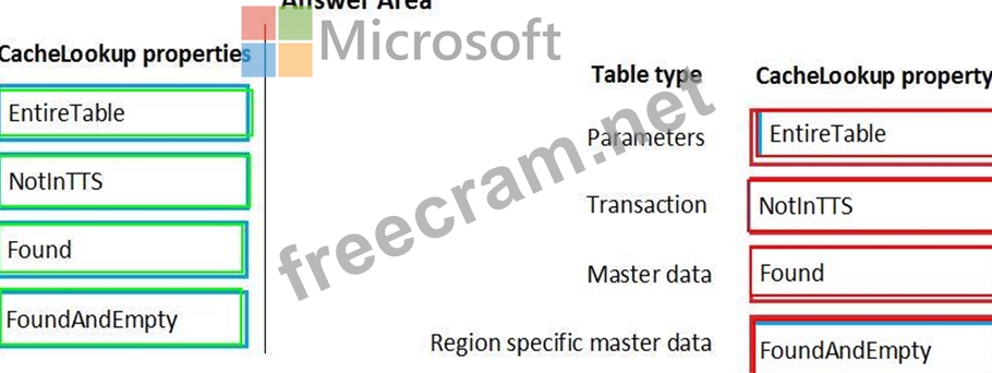 Which CacheLookup properties should you use? To answer, drag the CacheLookup properties to the correct table. Each property may be used once, more than once, or not at all. You may need to drag the split bar between panes or scroll to view content.