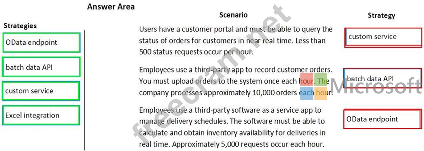 Which data integration strategies should you use? To answer, drag the appropriate data integration strategies to the correct scenarios. Each strategy may be used once, more than once, or not at all. You may need to drag the split bar between panes or scroll to view content.