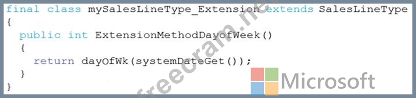 You must extend the class SalesLineType and add a new method that returns the day of week for the system's current date as an integer value.