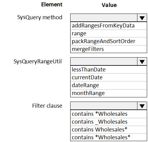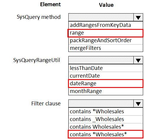 You must add default filters to the fleet management form. You must view only sales that occur in the current sales period and where the Customer name field contains the next Wholesales.