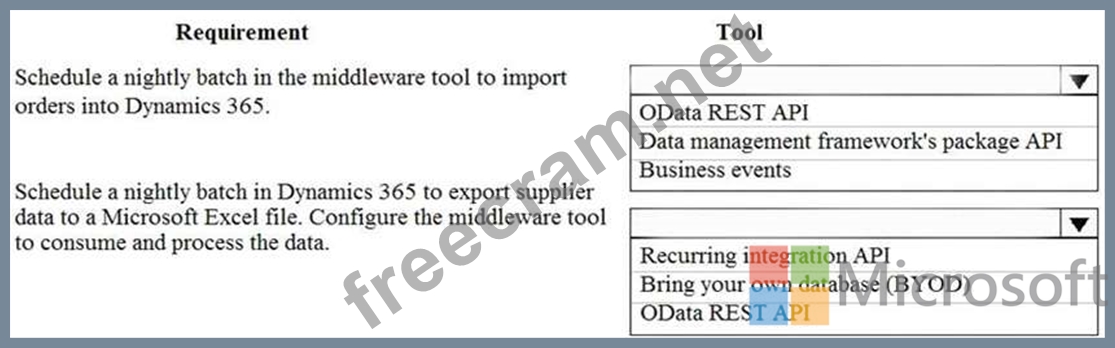 Question 2: HOTSPOT You need to implement the integration for the Vendor...