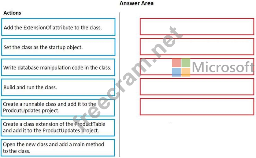 Question 99: DRAG DROP You are a Dynamics 365 Finance and Operations deve...