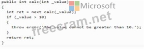 * Prevent the standard code from running if the value of the input parameter is greater than 10- You need to implement the correct solution. Which code segment should you use?