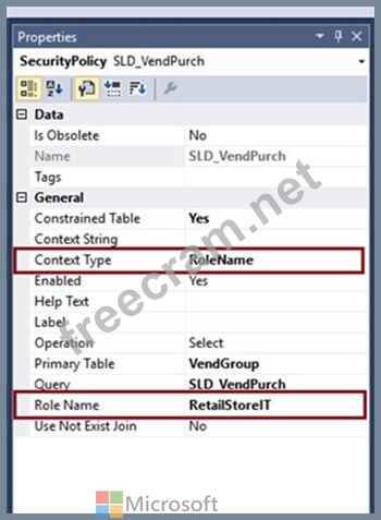 * RoleName - Set the property to this value if the policy should be applied only if a user in a specific role accesses the constrained tables.