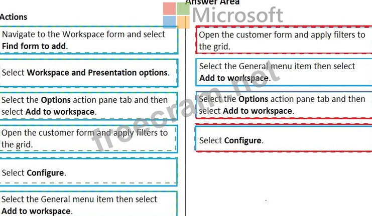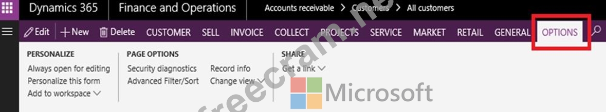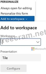 For some pages that include lists, the Add to workspace personalization feature is available in the Personalize group on the Options tab of the Action Pane. This feature lets you push relevant information from the current list to a specific workspace.