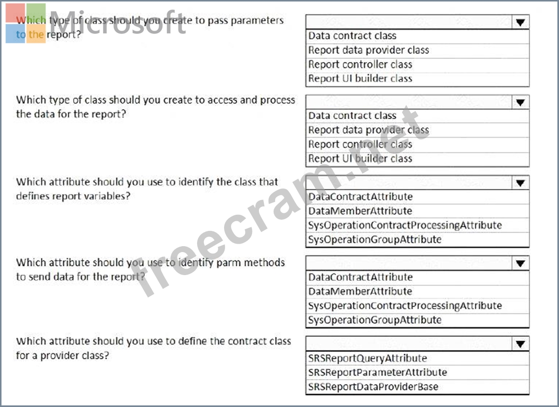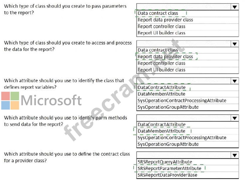 A data contract class defines the parameters for a report that is bound to a report data provider (RDP) class.