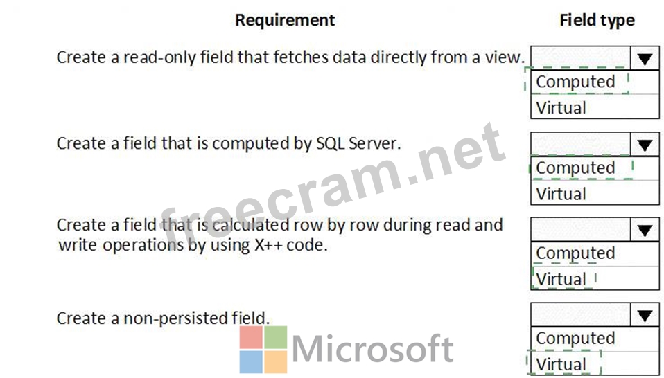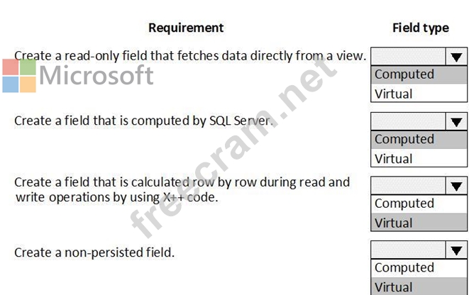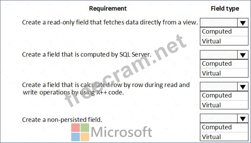 Which field types should you use? To answer, drag the appropriate field types to the correct requirements.