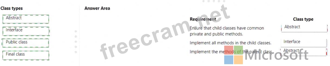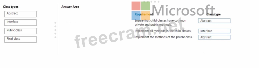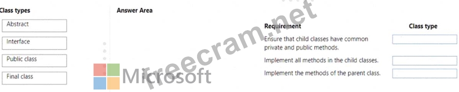 Which class types should you use? To answer, drag the appropriate class types to the correct requirements.