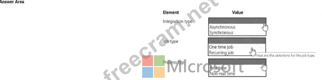 You need to design integrations for the freight processing source system Which integration strategies should you implement? To answer, select the appropriate options In the answer area.