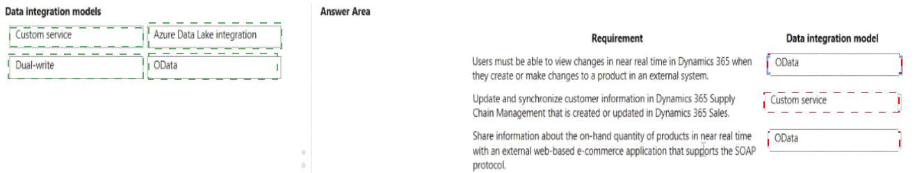 Which integration model should you select? To answer, drag the appropriate data integration models to the correct requirements. Each data integration model may be used once, more than once, or not at all. You may need to drag the split bar between panes or scroll to view content.