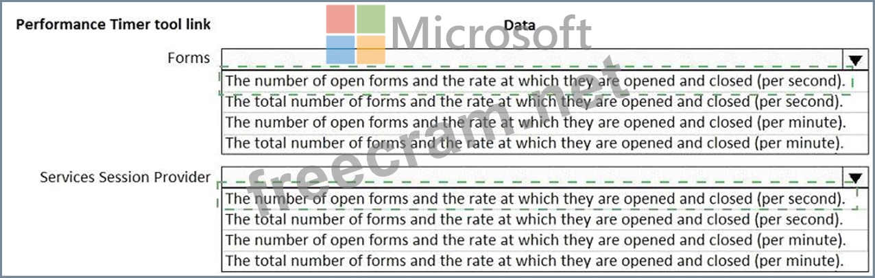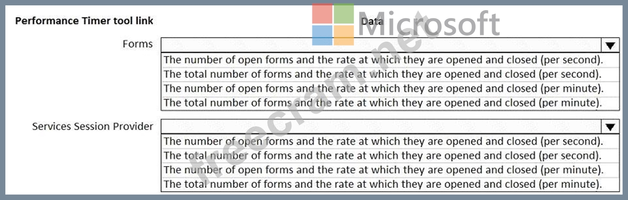 You launch the Performance Timer tool to troubleshoot performance issues with a business process.