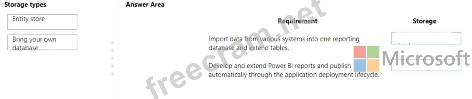 You need to select the applicable storage feature for each requirement.