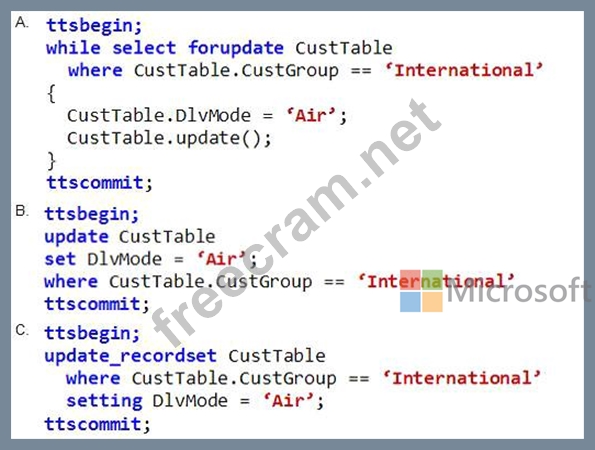 Question 10: You are the Dynamics 365 Finance Developer. You have the fol...